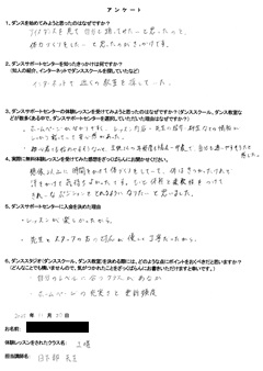 M様(富士見市/30代/女性) 受講クラス:木曜日 ジャズダンス・基礎~初級(日下部)